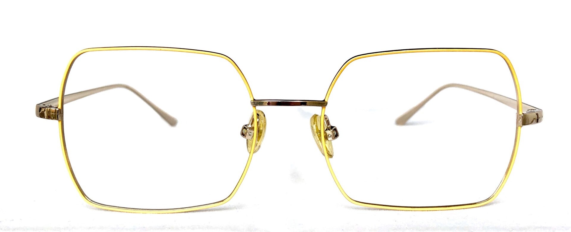 Stainless steel with a gold plated finish. Silicone nose pads with a metal core.