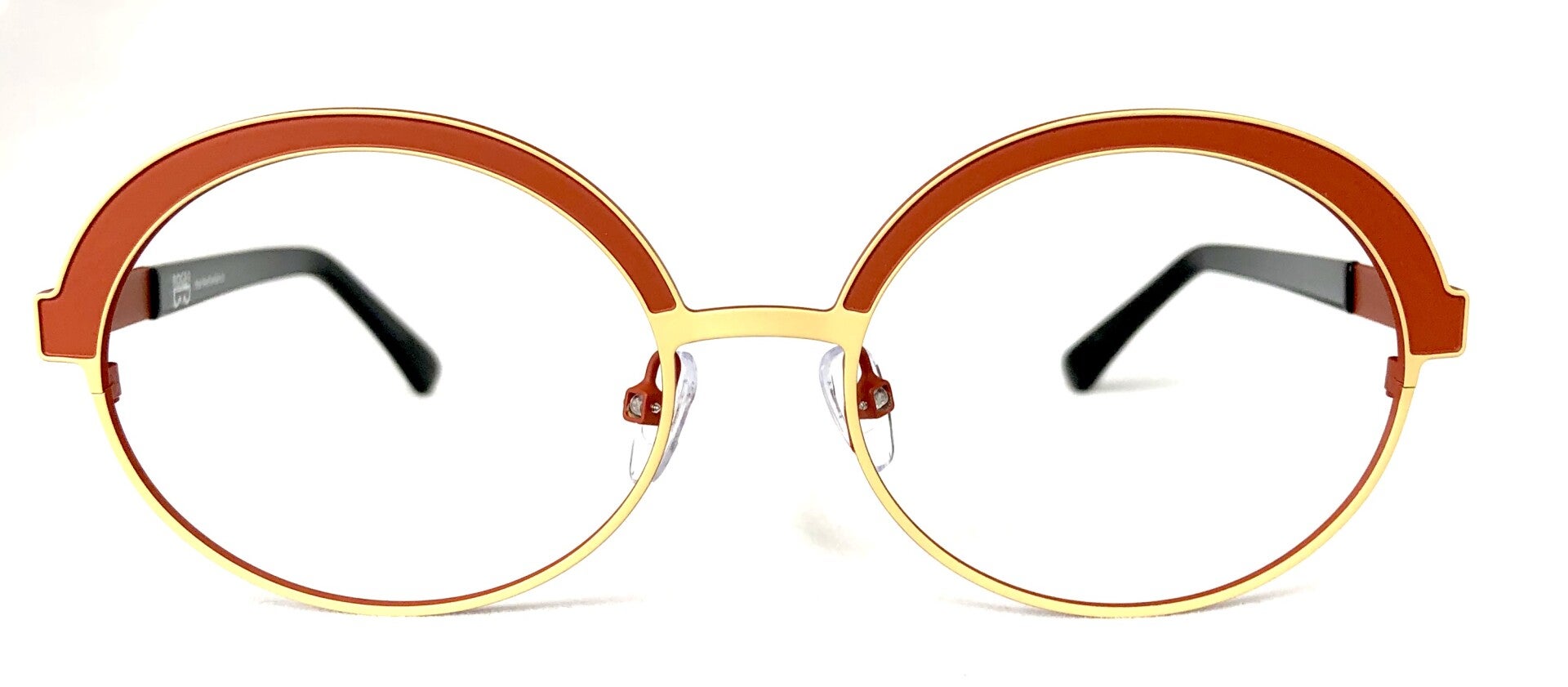 Stainless steel eyewear frame with a Swiss "Berlac" handpaint finish. Blockstyle frame(cut out of one piece of metal).
